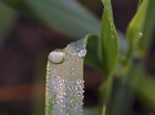 Raindrops On Leaf Blade Closeup