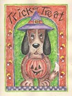 Trick or Treat Dog holding Pumpkin