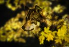 Wolf Profile In Orange Fall Leaves