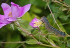 Blue Caterpillar On Magenta Flower