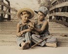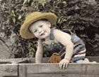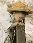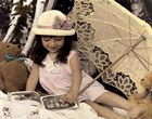 Sharon Forbes is a photographer whose hand-tinted imaginative photographs mirror many of the wistful images of her own childhood, a time when she played dress-up in exotic dance costumes belonging to her aunt, and attended a small country school. She liked art from a tender age and kept her creative drive alive while working in real estate and as a hair stylist. In an effort to find work that would allow her more time with her family, she decided to explored photography. Sharon has developed a style of hand-tinted black-and-white photographs that magnificently expresses the spontaneity and joy of animals and children. The artist carefully creates each setting; most of the times she uses costumes or takes interior furnishings out to casual outdoor settings. With a lot of patience, she photographs the subject and then tints each portrait by hand.