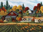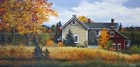 Debbi Wetzel loves to paint and she loves to share her world with her viewers. Working from her studio which overlooks the constantly changing landscapes of the Green Mountains of Vermont, she paints what she knows. She grew up in a small village, and the village life with crows in the cornfield, church steeples and pumpkins on front porch are what inspire her work. Debbi was introduced to acrylics in the 1970s, and she has found her own way around the medium. She painted on broken pieces of antique wooden boxes, Vermont roofing shingle slate, and furniture and eventually evolved into canvas originals. She uses sharp lines and bright, bold colors to define county architecture, the fall foliage, and to tell the story of the countryside that she likes to share in her paintings.