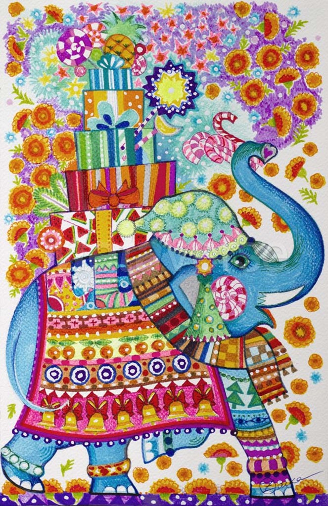Christmas Elephant Party by Oxana Zaika art print