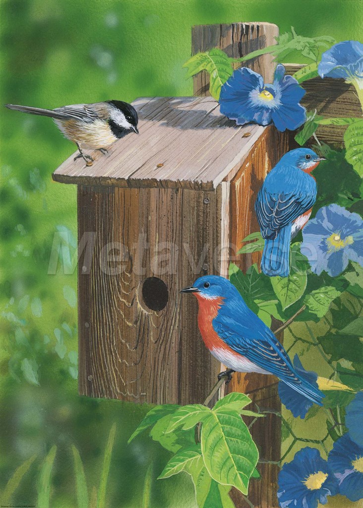 Birds At The Feeder (Bluebirds)
