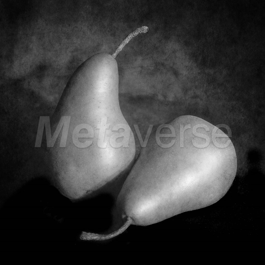 Two pears on a gray and black background