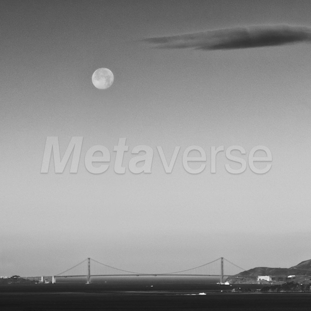 A moon in the sky of a sunset with a suspension bridge on the ground