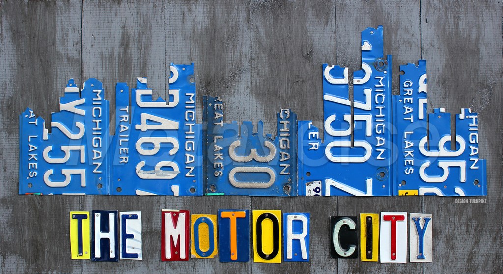 Detriot City Skyline License Plate