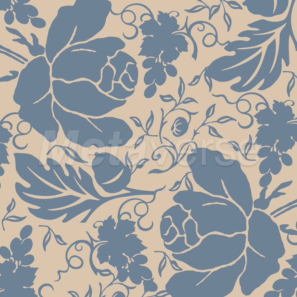 Grapes and Buds Blue and Taupe