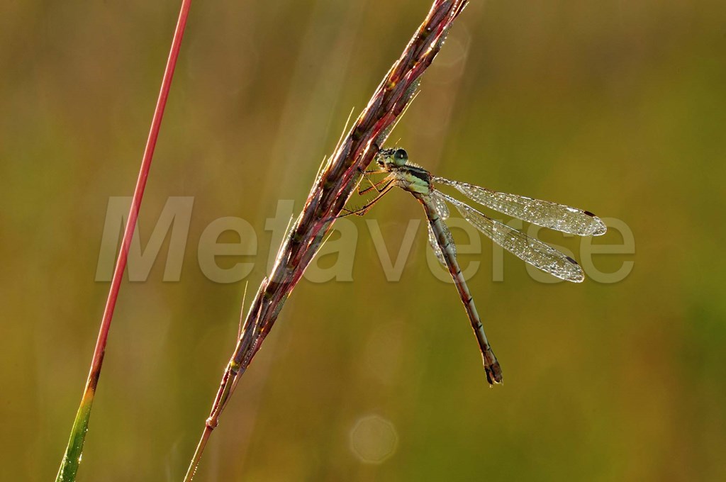 Green Dragonfly On Red Stem