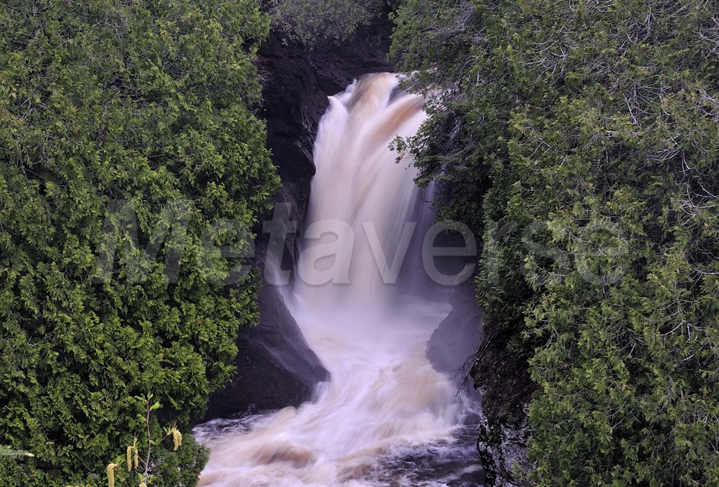 Lake Superior Waterfall Between Trees