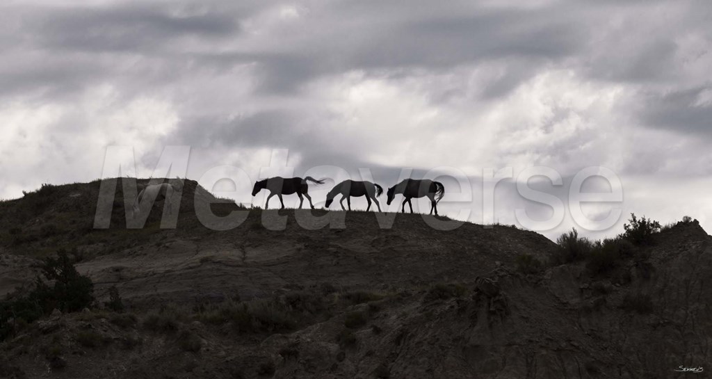 Horse Silhouettes Under Clouded Sky