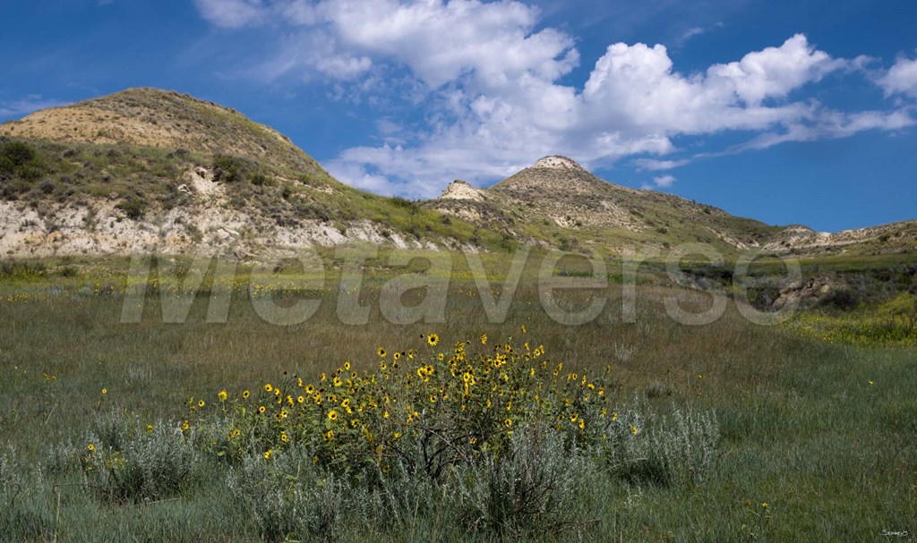 Wildflowers And Mountiains With Clouds