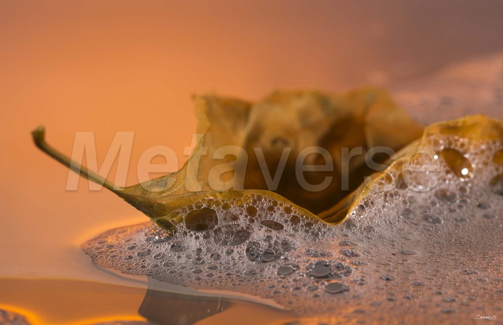 Yellow Fall Leaf Floating In Bubbles I