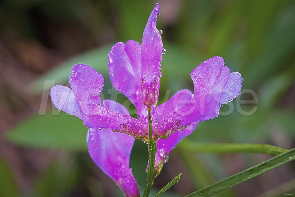 Bloomed Magenta Flower And Dew