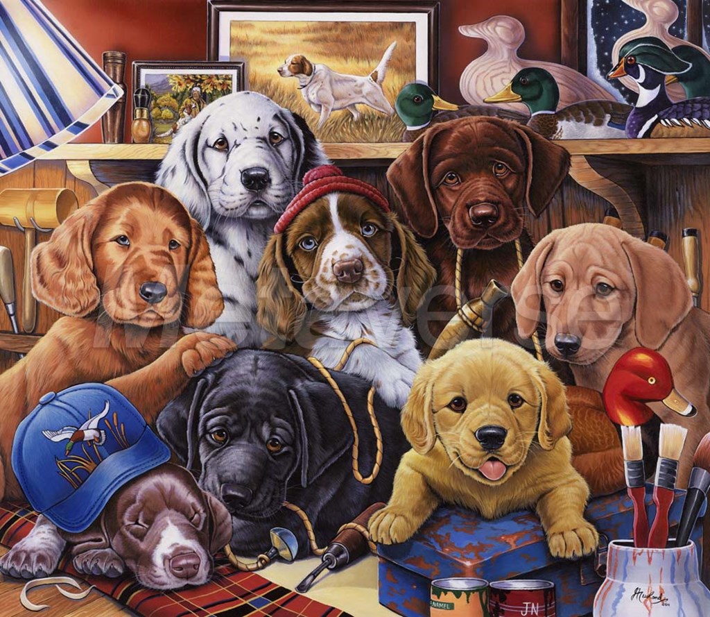 Grandpa's Puppies by Jenny Newland art print