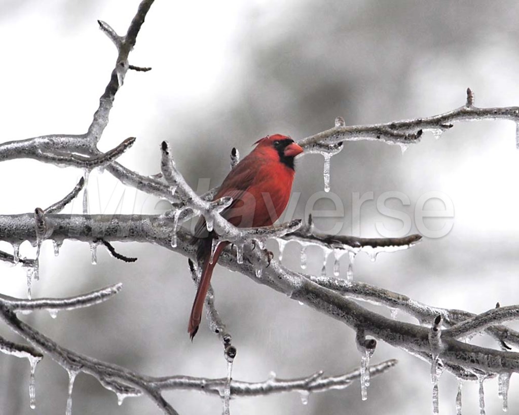 Male Cardinal Braving The Cold