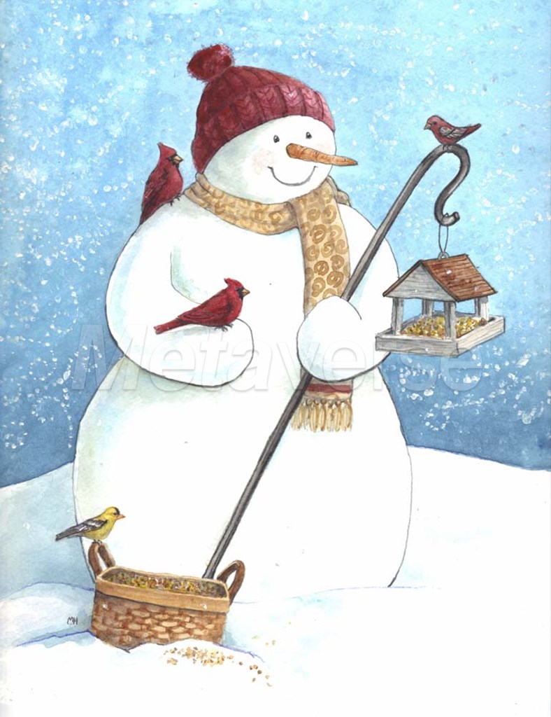 Snowman Red Hat by Melinda Hipsher art print