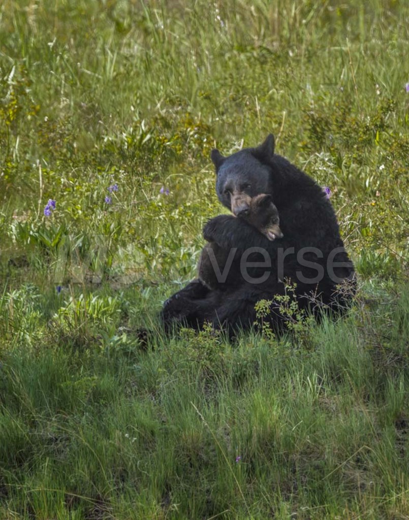 Black Bear Hugging Cub