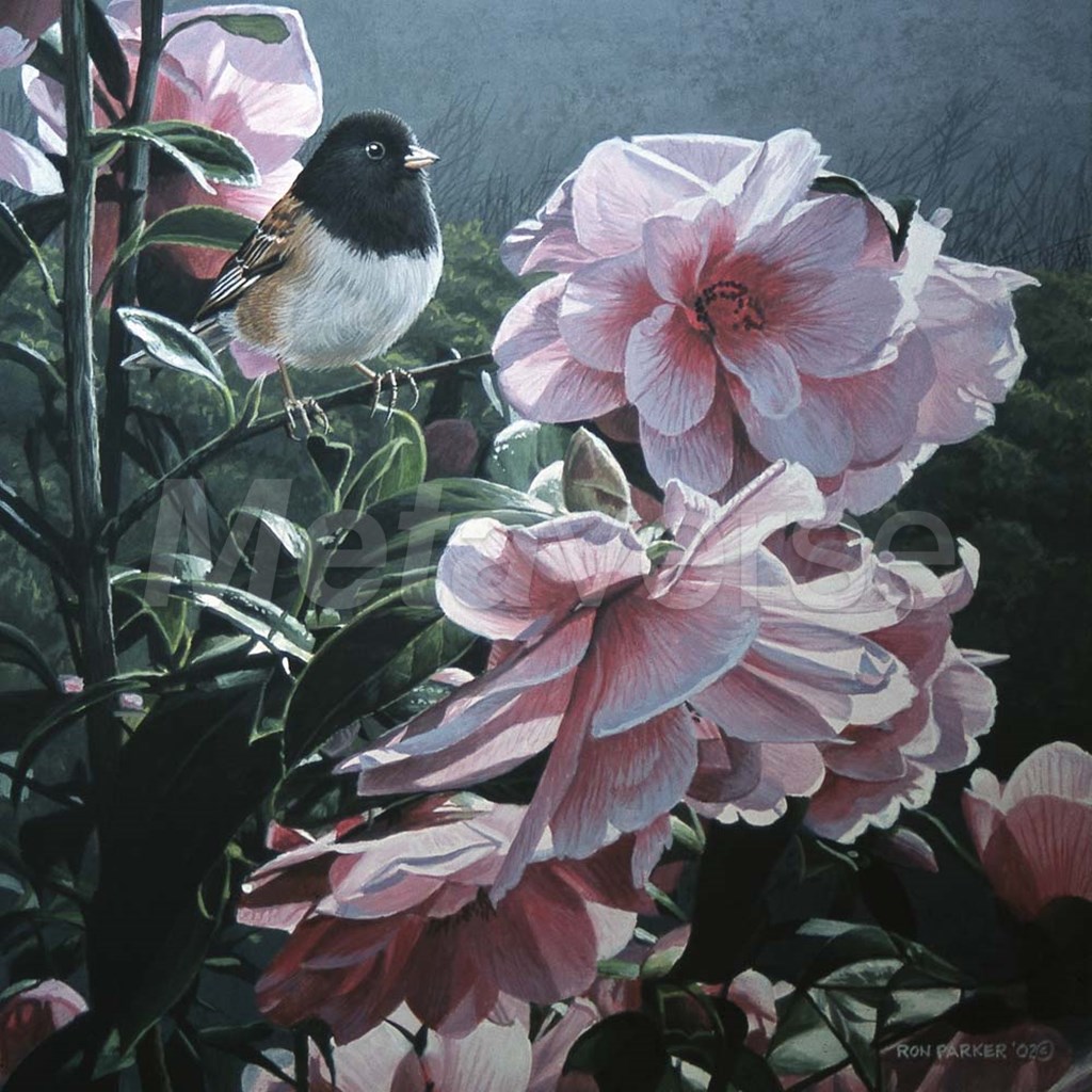 Junco And Camelia by Ron Parker art print