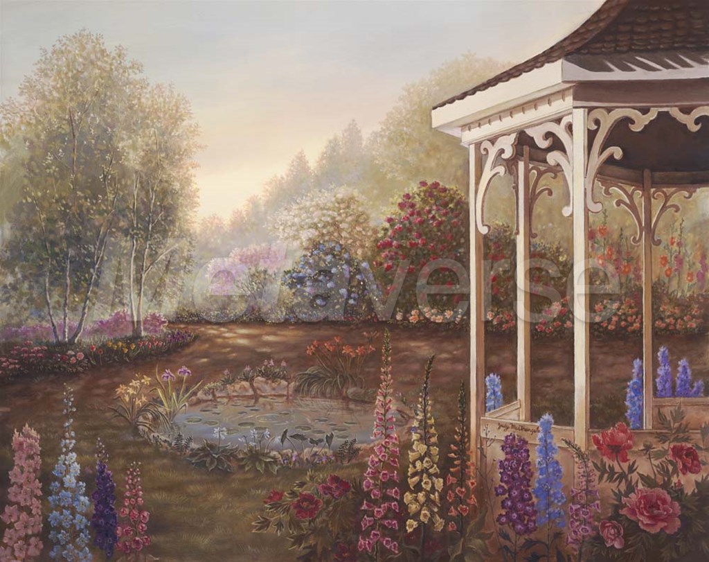 Gazebo With Foxgloves by Judy Mastrangelo art print