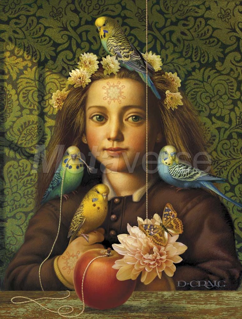 Girl With Parakeets by Dan Craig art print