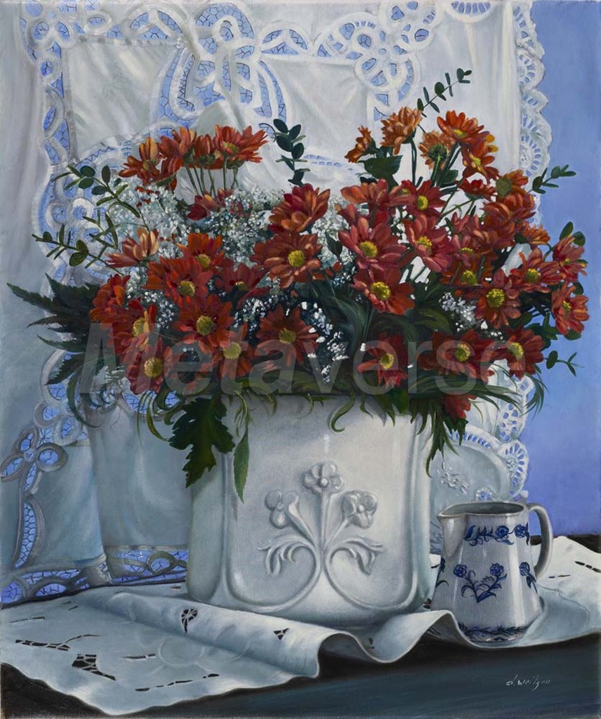 Vaso Bianco con Daliette Amaranto