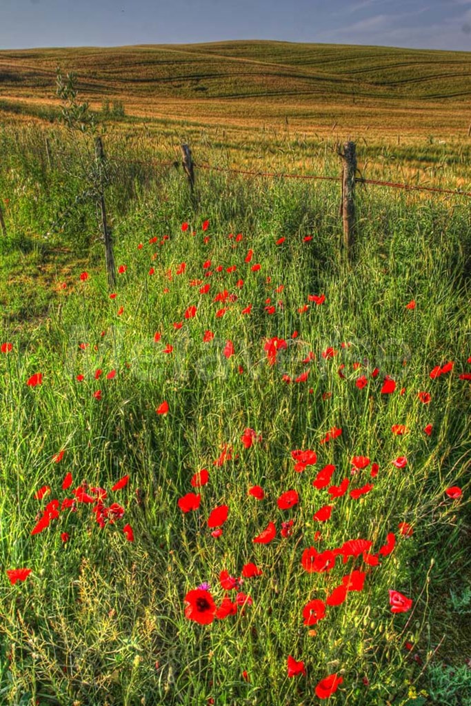 Tuscan Vertical Poppies and Fence