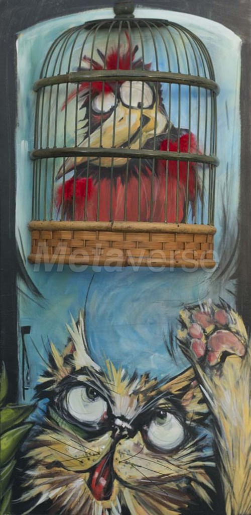 Bird In Cage With Cat by Tim Nyberg art print