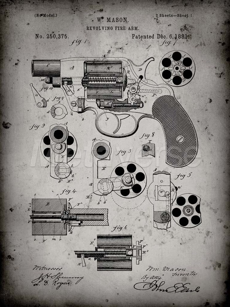 Revolving Fire Arm Patent - Faded Grey