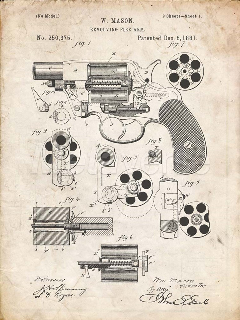 Revolving Fire Arm Patent - Vintage Parchment