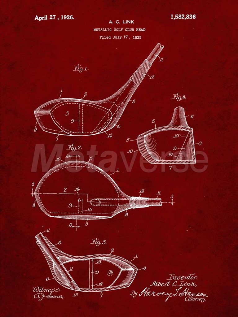 Metallic Golf Club Head Patent - Burgundy