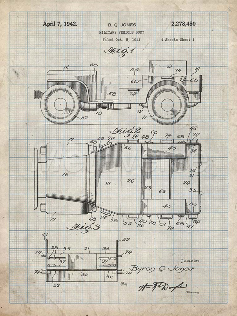 Military Vehicle Body Patent - Antique Grid Parchment