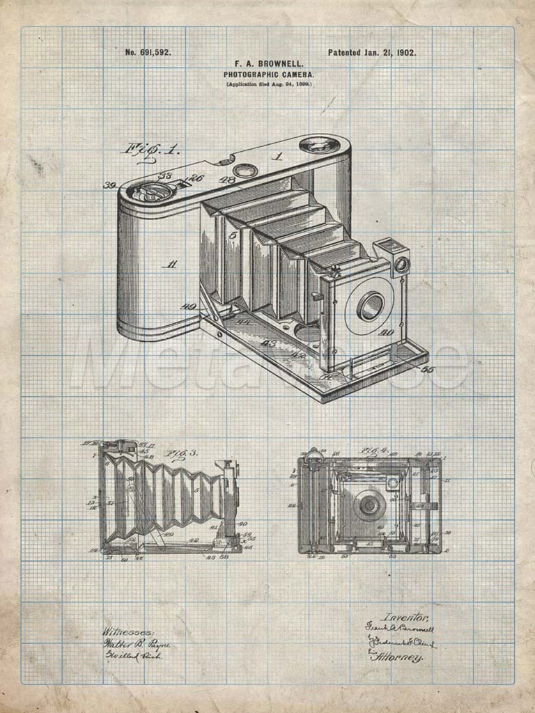 Photographic Camera Patent - Antique Grid Parchment
