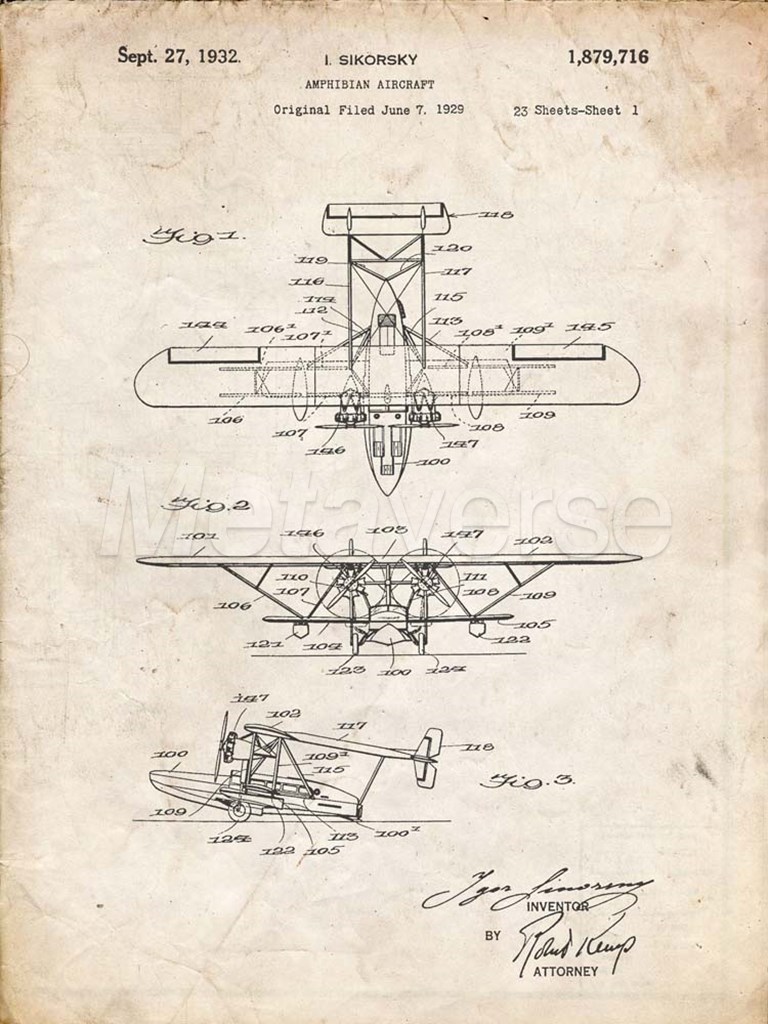 Amphibian Aircraft Patent - Vintage Parchment