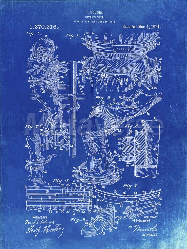Diver's Suit Patent - Faded Blueprint