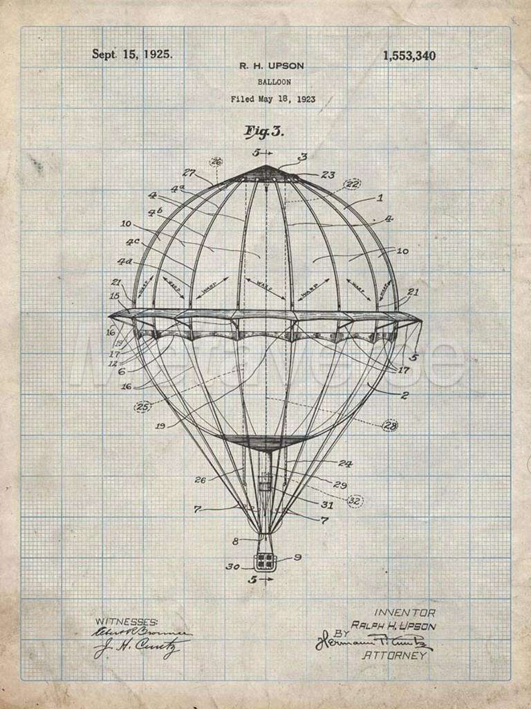 Balloon Patent - Antique Grid Parchment