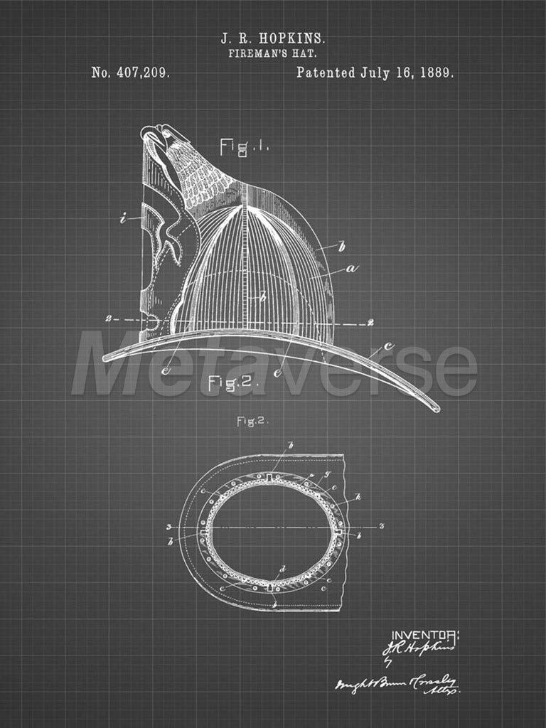 Fireman's Hat Patent - Black Grid