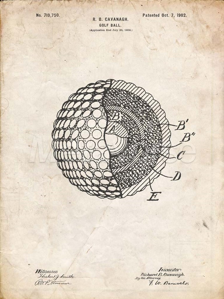 Golf Ball Patent - Vintage Parchment