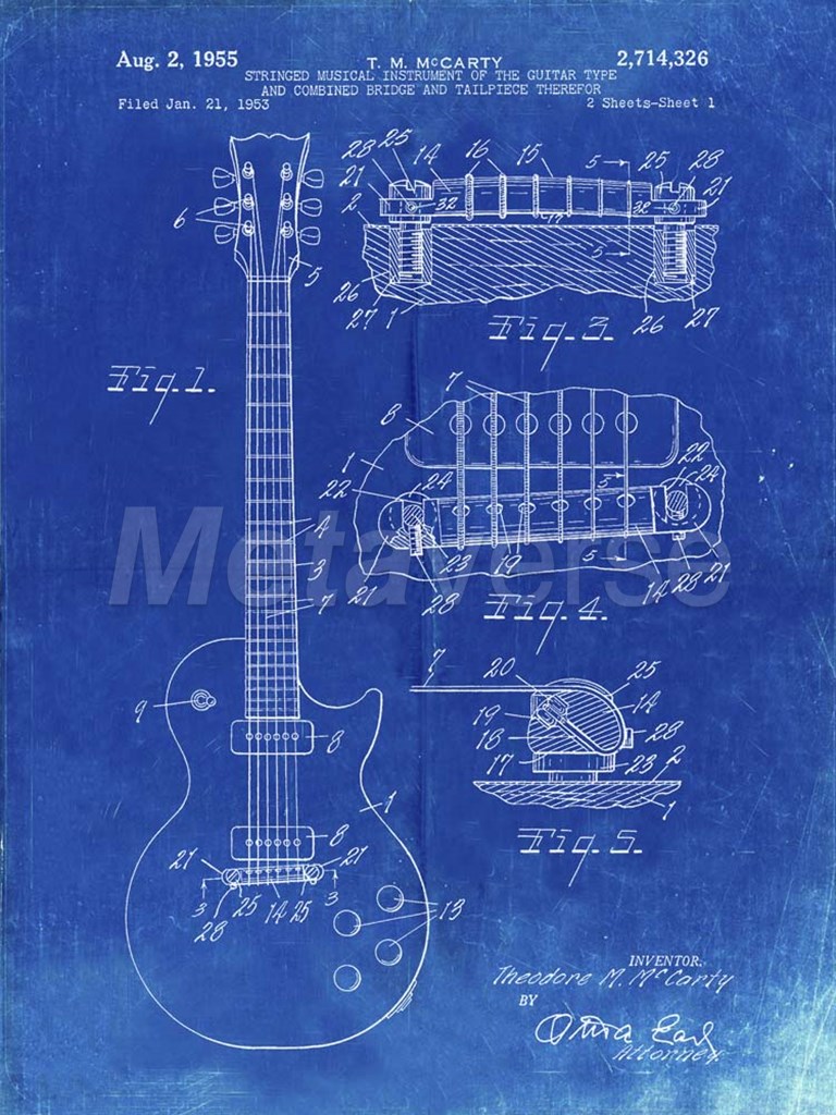 Guitar & Combined Bridge & Tailpiece Therefor Patent - Faded Blueprint