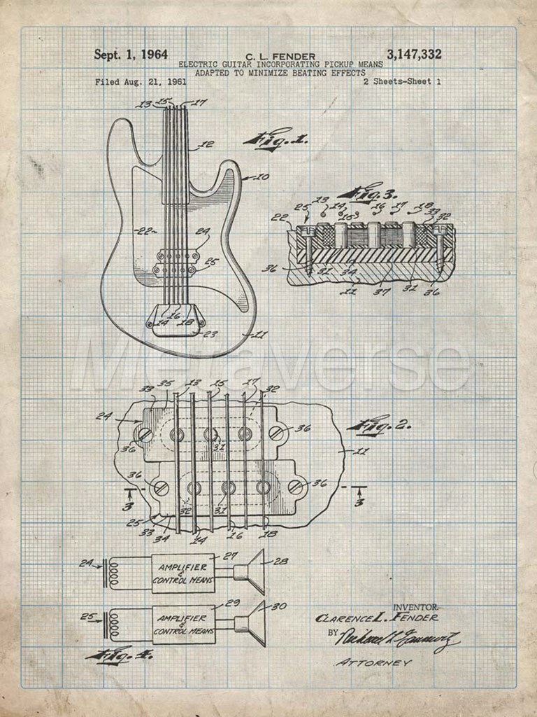 Electric Guitar Patent - Antique Grid Parchment