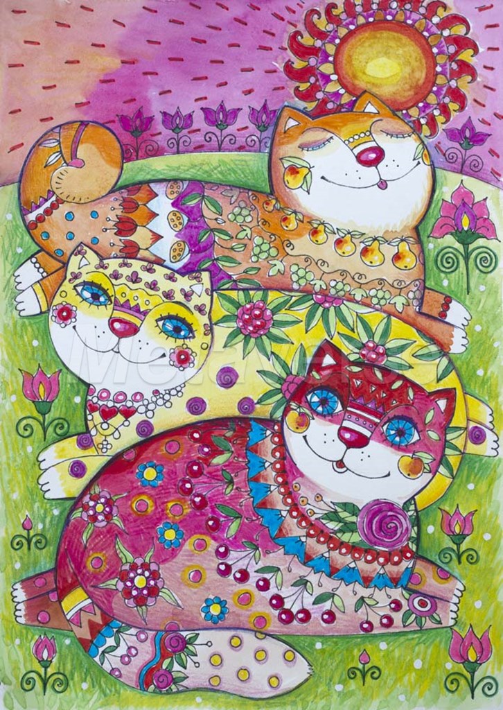 3 Happy Cats by Oxana Zaika art print