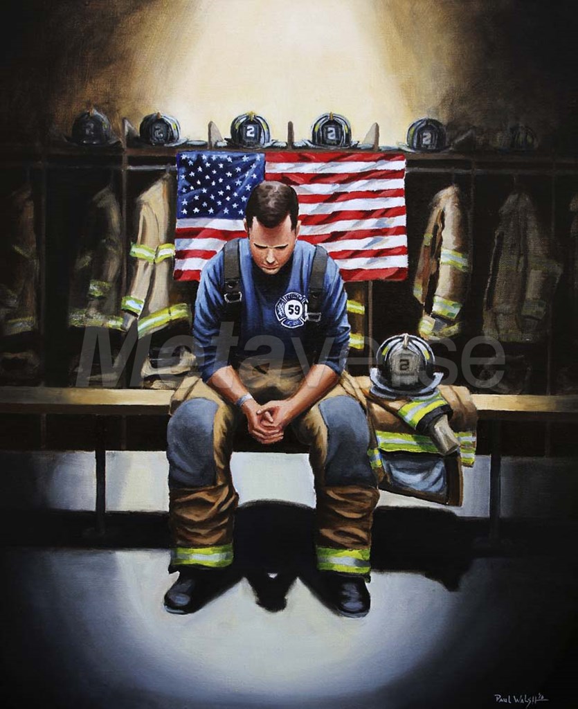 Praying Firefighter by Paul Walsh art print