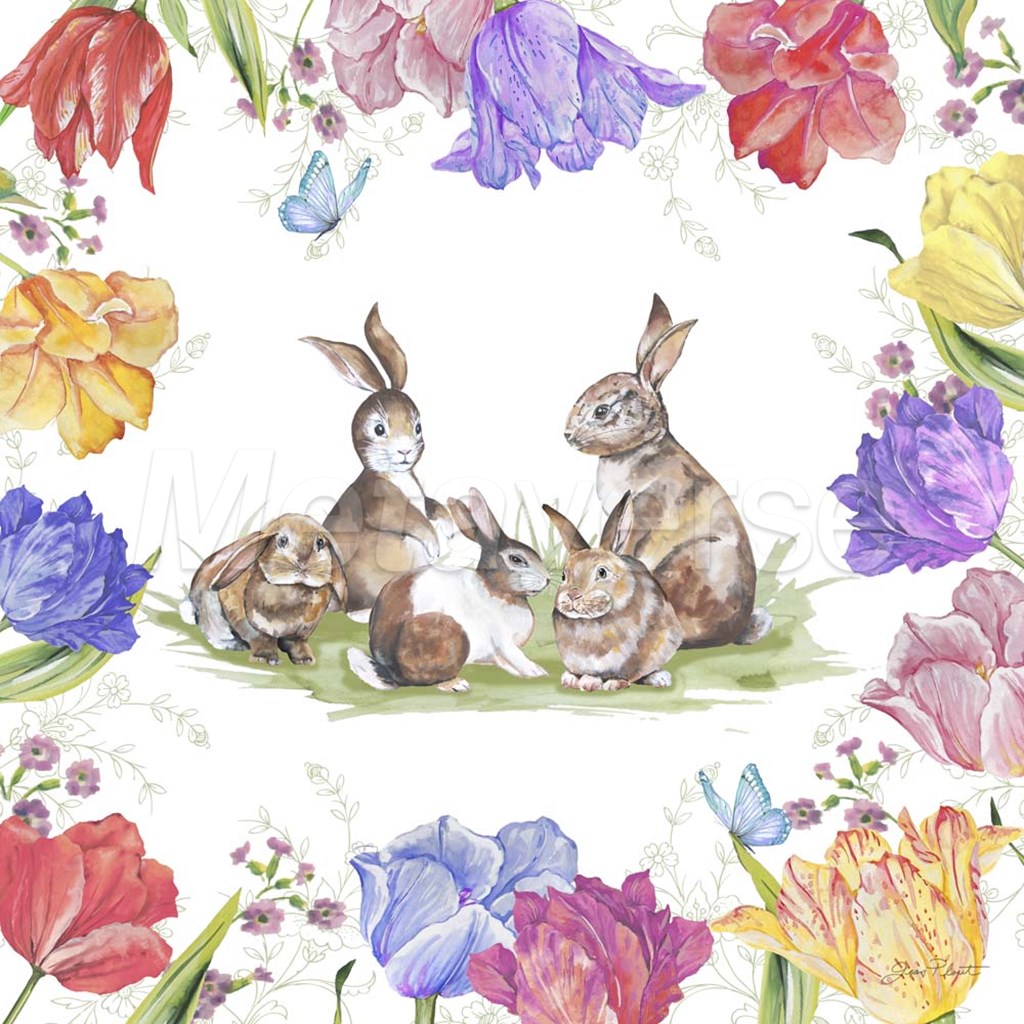 Bunnies In The Tulips-A