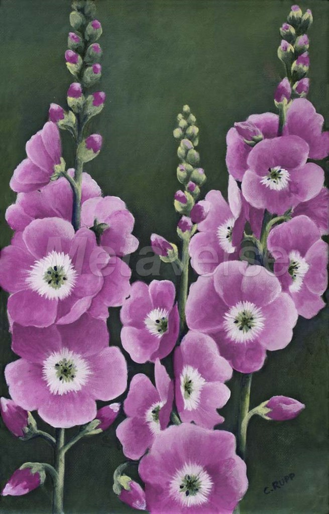 Hollyhocks in Lilac by Carol J Rupp art print