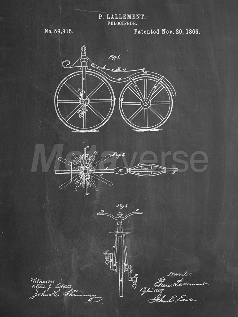Chalkboard First Bicycle 1866 Patent