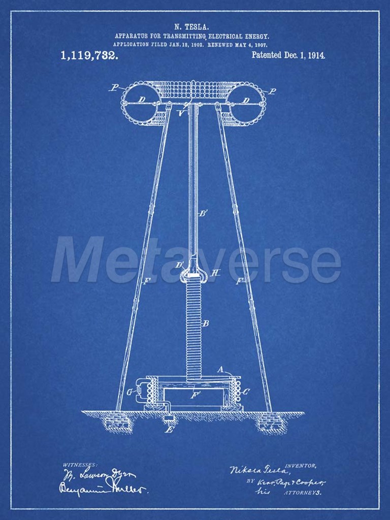 Blueprint Tesla Energy Transmitter Patent