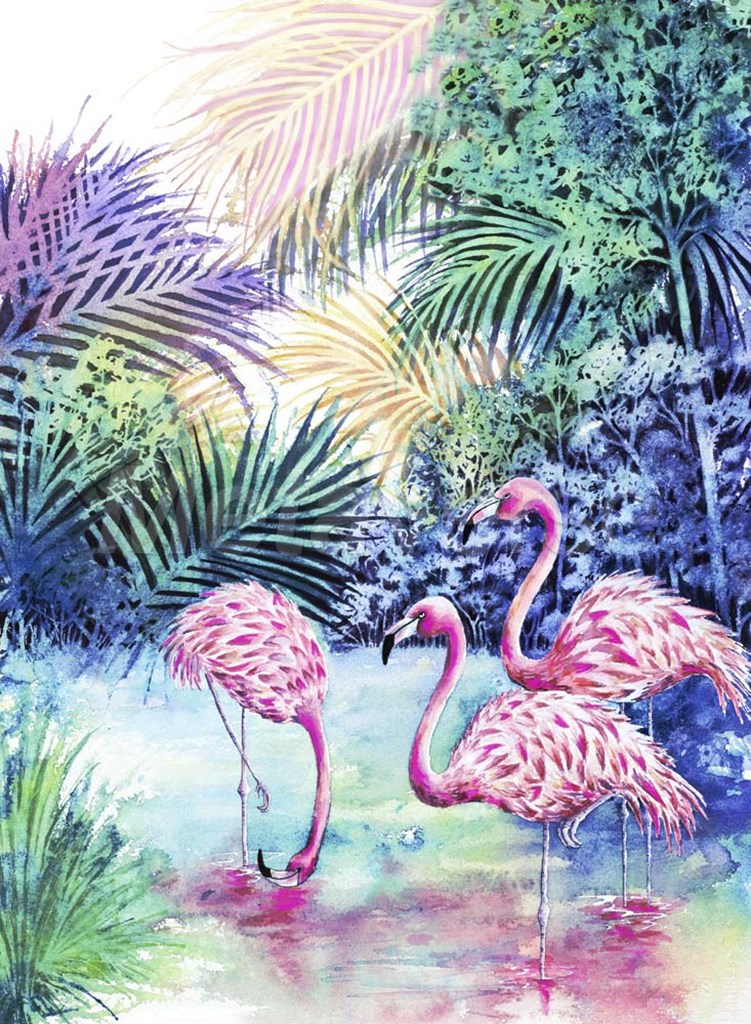 Three Flamingos by Michelle Faber art print